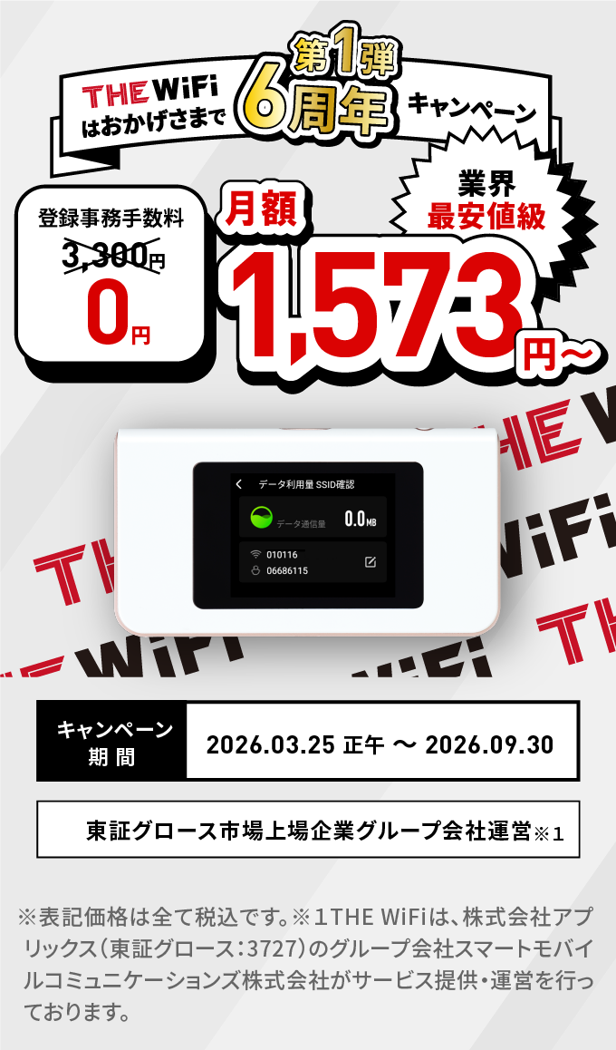- 2022.01.14 THE WiFiが「ちょっとWiFi」の"プロがおすすめするポケットWiFi"に選出されました!